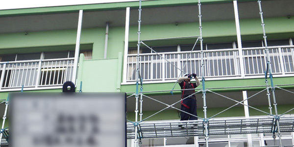 手摺先行方式足場組立工法を採用することにより、作業員の墜転落など事故発生のリスクを下げることができます。