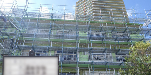 実際には、下巾木の設置・メッシュシートの設置をして完了となりますが、足場のイメージ像として掲載しています。