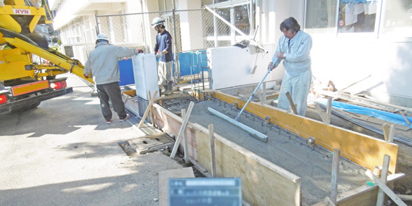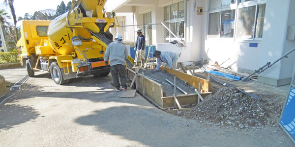 まず現場に搬入されたコンクリートの受入検査をおこない、問題が無ければ打設作業にはいります。打設時にはバイブレーターを使い、余計な空気や水分を出し施工不良を起こさないようにし、かつコンクリートを隅々に行き渡るようにします。